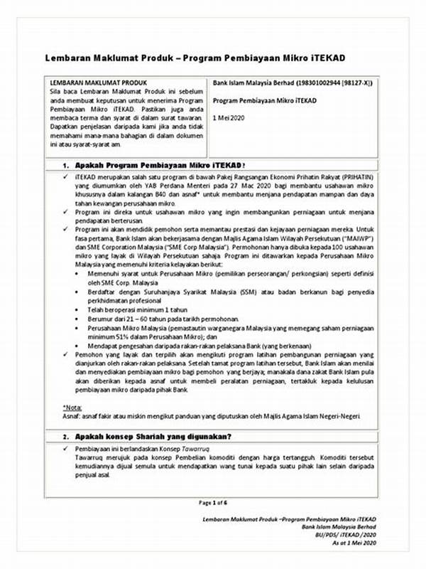 Kali ini kita bahas gimana sih cara milih program pembiayaan mikro terpercaya yang pas buat kamu. Jangan asal pilih, guys! Pertama, kamu harus cek track record penyedia program tersebut. Kedua, pastikan syarat dan ketentuan yang ditawarkan sesuai kemampuan dan kebutuhanmu. Jangan paksakan diri! Ketiga, tanya-tanya dulu ke temen atau kenalan yang udah pernah ikutan. Biar dapet insight langsung gitu. So, pilih yang terbaik biar usahamu juga makin maju!