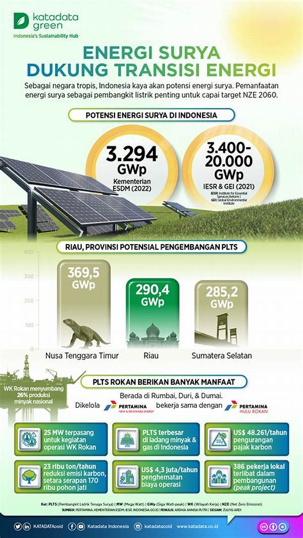 Okay, let’s talk serious! Infrastruktur energi surya Indonesia itu nggak cuma levelnya keren abis buat sumber energi alternatif, tapi juga ramah lingkungan. Ini jadi solusi jitu buat menekan emisi karbon. Banyak banget deh praktik yang udah diterapin di lapangan, kayak kalian tahu CO2 yang dihasilkan dari energi fosil itu berkurang drastis. Tenang aja, dengan infrastruktur energi surya Indonesia, dampak negatif buat lingkungan bakal bisa diminimalisir. Jadinya, alam kita bakal lebih sehat dan asri pastinya!